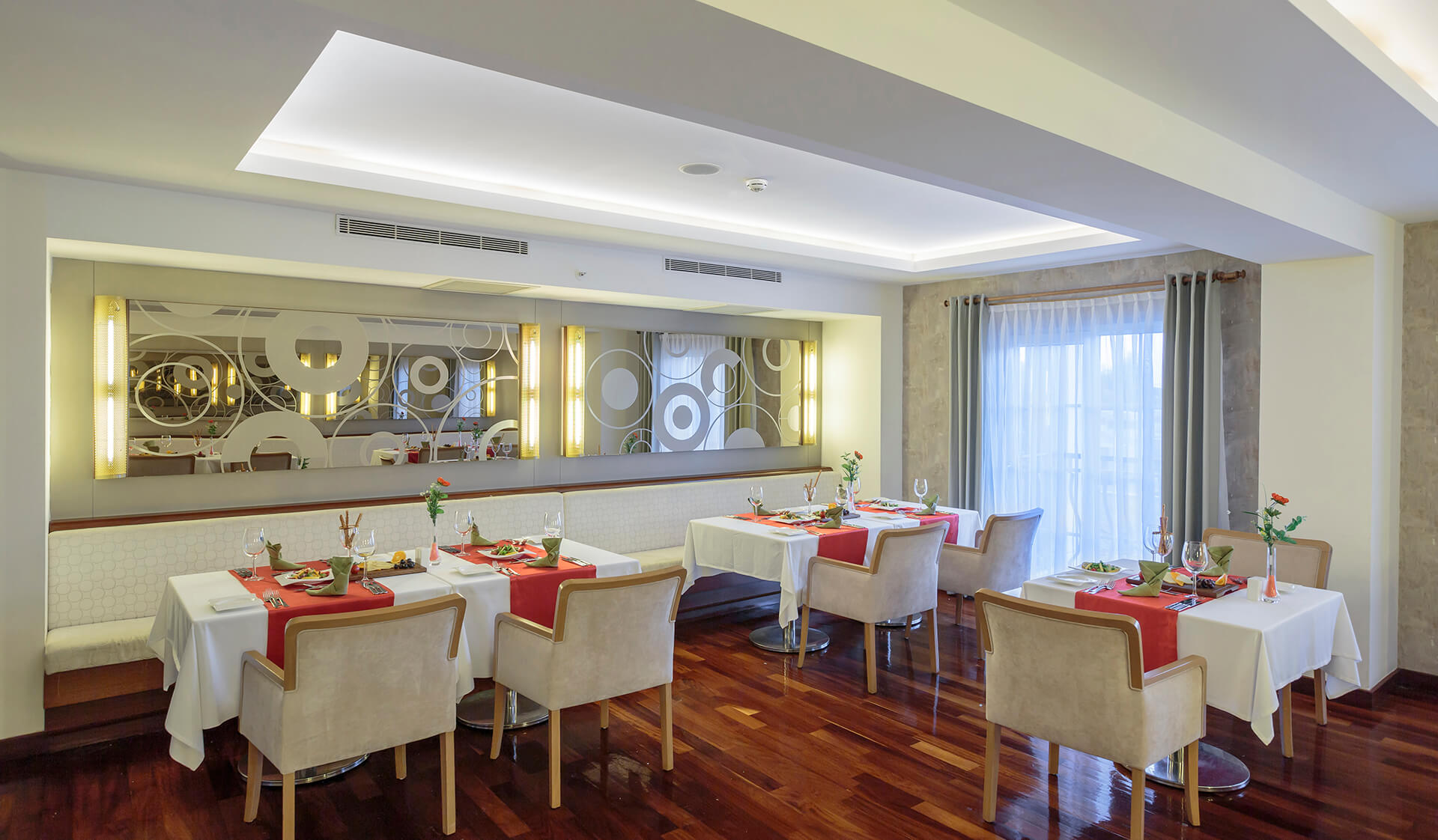 Çin Restoranı, misafirleri çağdaş ve geleneksel Çin dekorasyonunun harika bir kombinasyonu ile karşılıyor. Restoranın atmosferi, gizemli Asya‘nın büyülü dünyasını yansıtırken, modern dokunuşlar da burada bulunur.